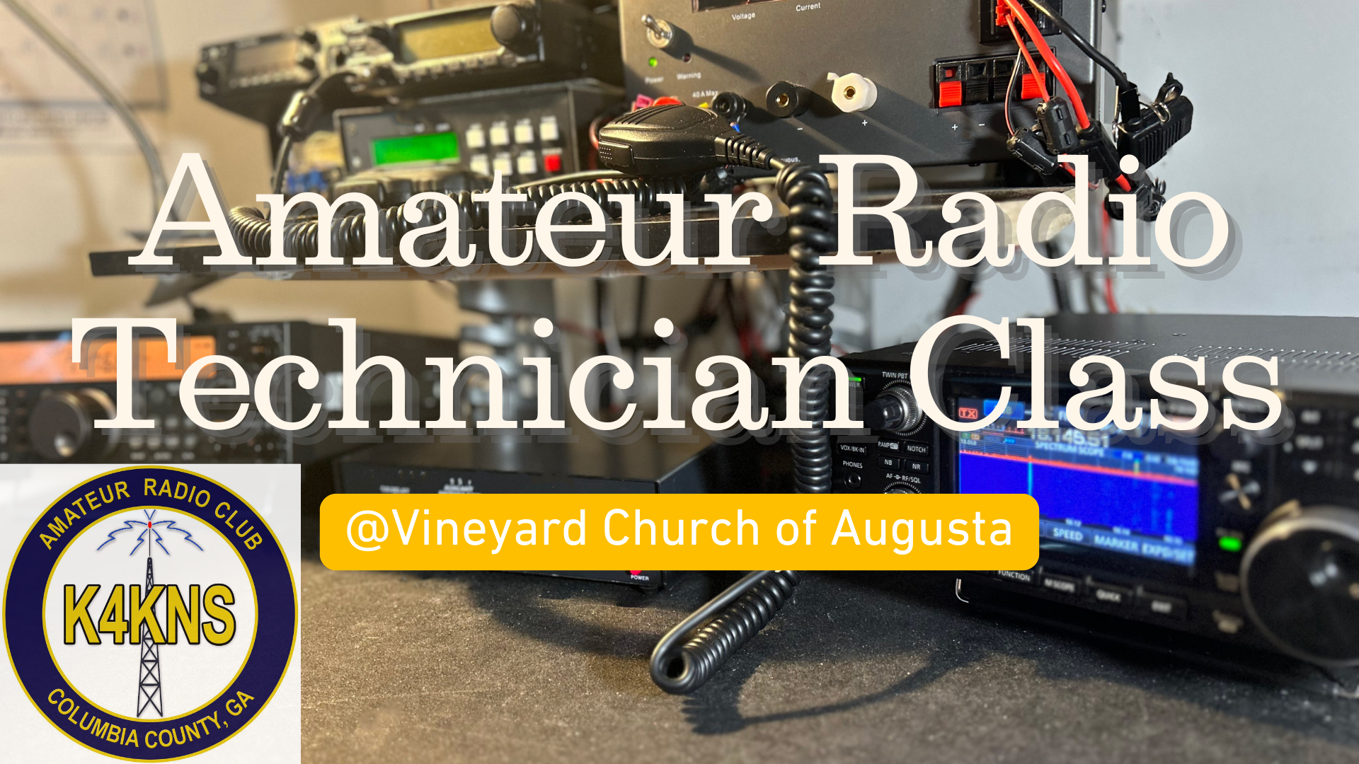 The Amateur Radio Club of Columbia County is offering an Amateur Radio Technician Class at Vineyard Church of Augusta. This opportunity to learn about ham radio operation is open to the community. If you are interested and would like to learn more about this course, please contact Earl Welsh (706.373.2874) or Rusty Welsh (706.3737.2872).
